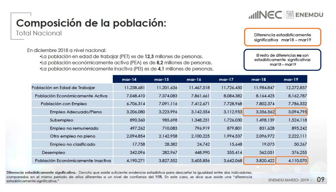 CIFRAS DEL INEC AÑO 2019